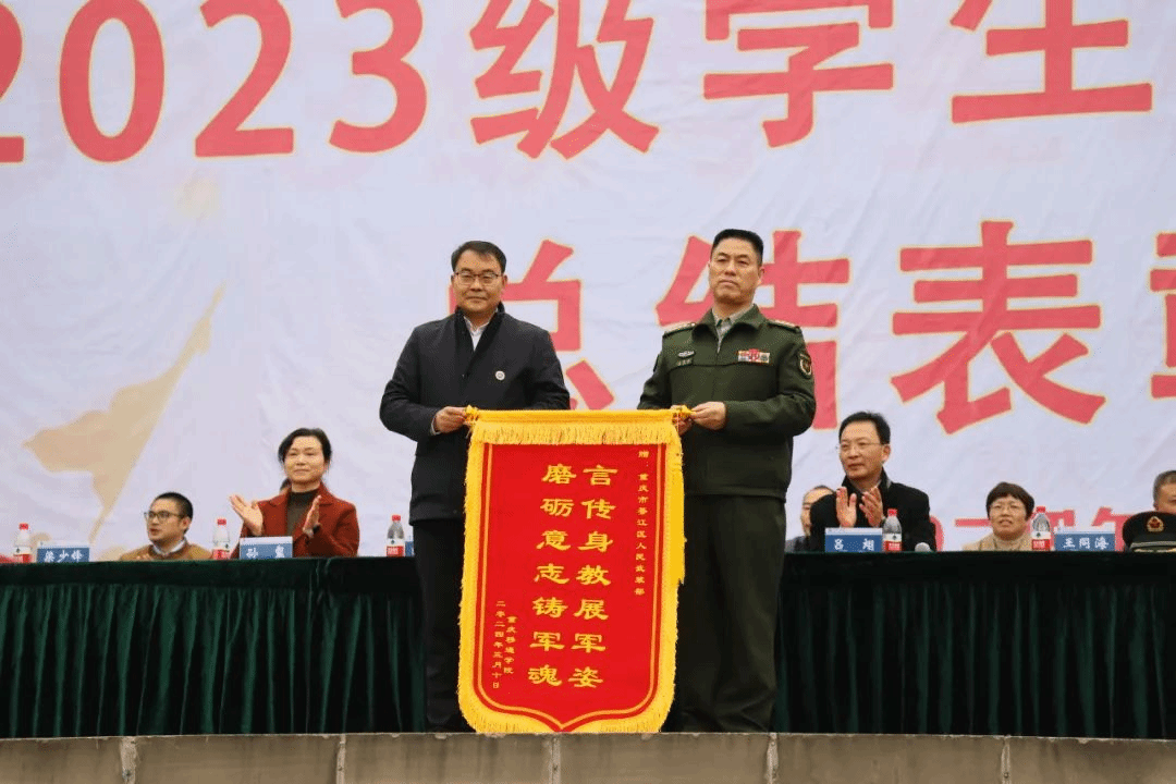 重庆移通学院校长吕翊在致辞中提到,同学们在军训期间展现出的优异精神面貌,无论是实战性的队列会操、军体拳、匕首操,还是理论性的国防课程、战地医疗救助,同学们在各个项目上都有显著表现。通过军训,同学们不仅学到了实际技能,更培养出了面对和克服困难的能力。他最后提出三点期望:一是希望学生们立志高远,有家国情怀,二是要有坚韧的毅力,面对困难时能够勇敢地克服它们,三是要以多样的技能与能力装备自己,为社会和国家做出贡献。