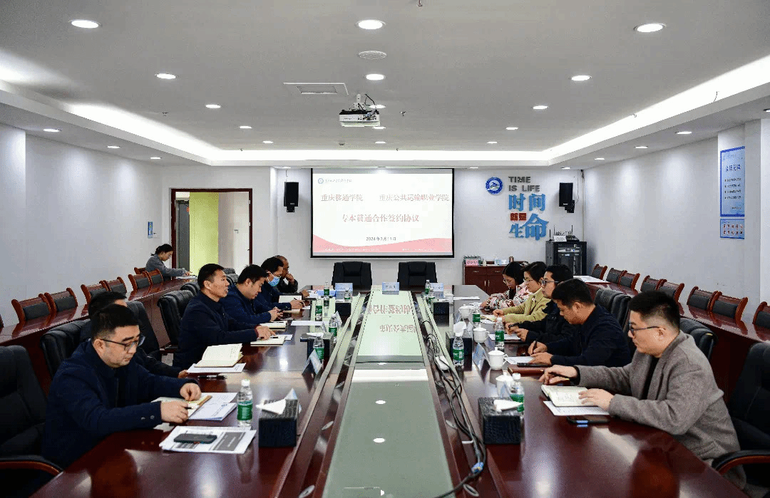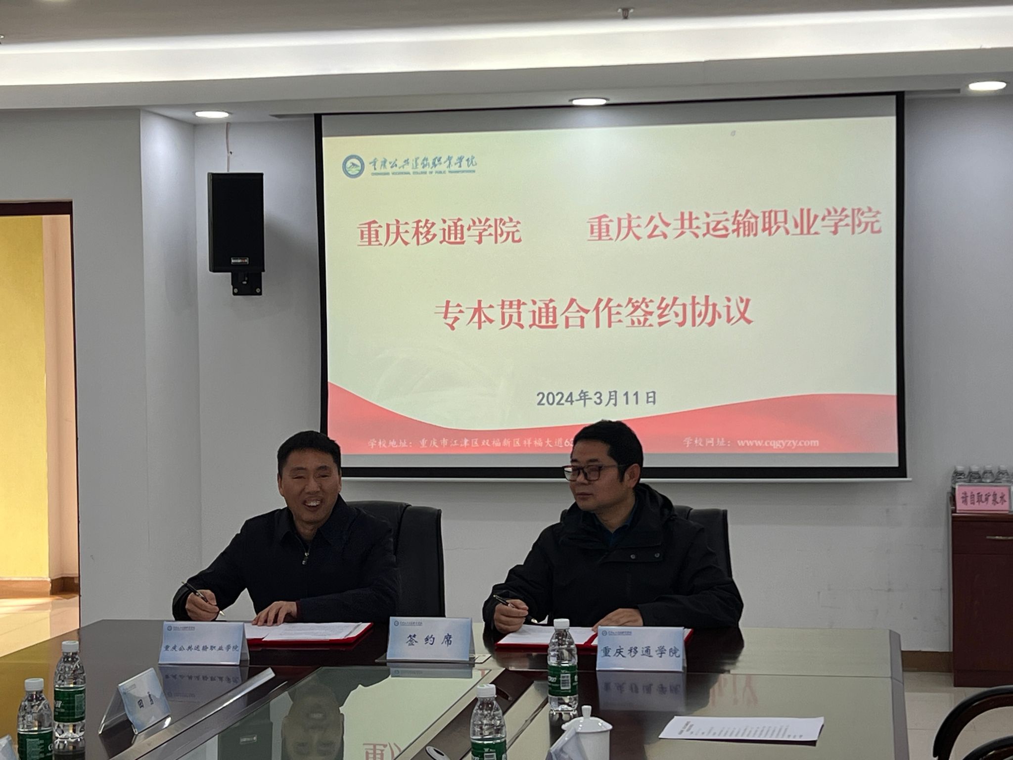 3月11日下午15:30,我校与重庆公共运输职业学院在江津区重庆公共运输职业学院507会议室举行专本贯通分段培养联合办学协议签约仪式。