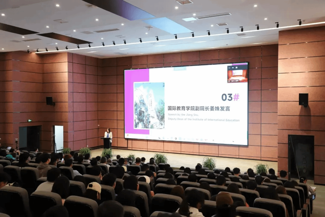 揭牌和授牌仪式结束后,国际教育学院副院长姜姝上台发言。她表示,国际教育学院的建立是学校与国家的高校国际化教育发展趋势的高度契合,是学校为提升学生国际化视野,享受良好的海外教育资源的又一重大跨越。她强调,学院将致力于为学生们建立本硕直通通道、提供专职一对一升学规划指导、设计与国际学位接轨课程等六大工作,助力学校国际化教育建设及发展。姜姝提到,学院将实行双轨并行、本硕一贯制的人才培养模式,实施分层化、个性化管理,让国际教育学院的学生在完成本科学业同时,也能为未来继续深造做好充足的准备。