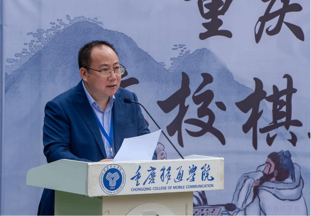 重庆市围棋协会副秘书长文庆林老师指导发言,他表示“非常开心仍然能有如此多关注并支持棋类赛事的单位、组织和个人参与到棋类文化的推广当中,希望以后能有更多的高校和社会各界单位参与其中,对于棋类文明未来发展感到一片光明。”