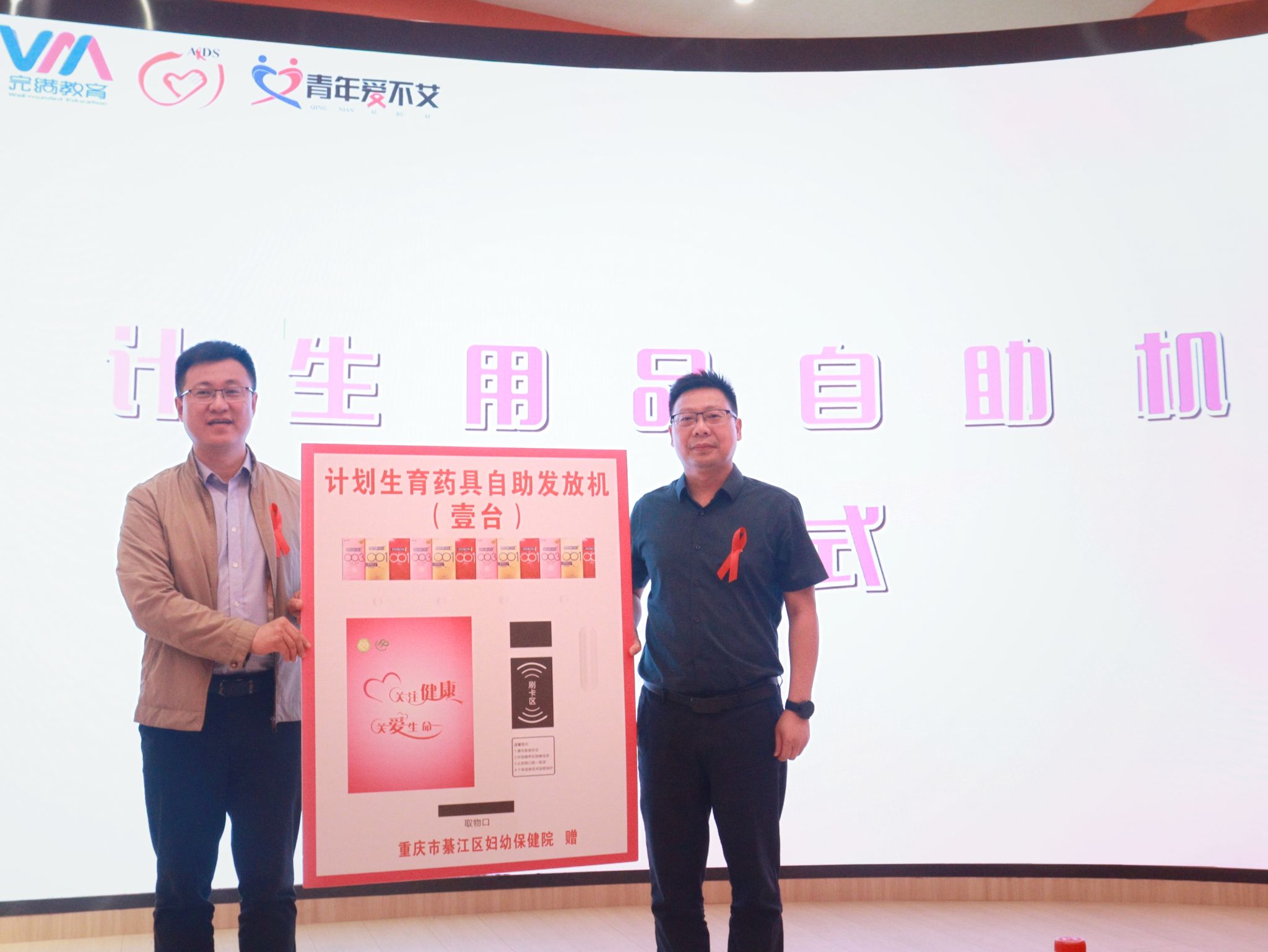 启动仪式现场,区妇幼保健院向学校捐赠了1台计生用品自助机,将投放在校医务室进行使用。这将为重庆移通学院开展艾滋病防治工作提供更便捷、更专业的保障,同时也为引导广大青年正确看待两性行为,增强个人保护意识和安全意识,有效促进学校师生的健康教育和大学生艾滋病防治宣教育工作。
