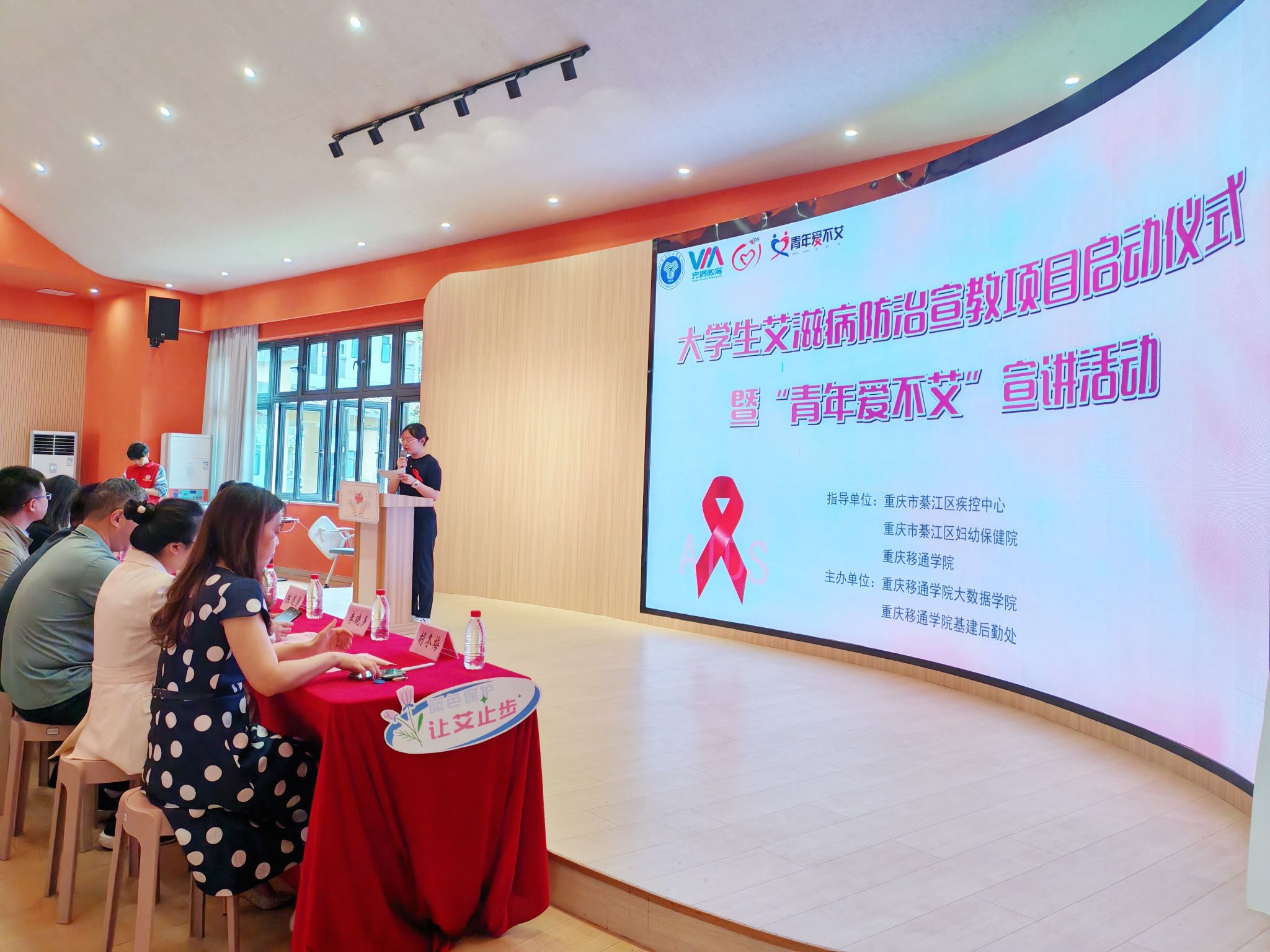 凝聚力量合力抗艾,携手共建健康校园,为提高社会大众和青年大学生对艾滋病防治的认识,为共建和谐校园贡献志愿力量,重庆移通学院联合綦江区疾病预防控制中心、綦江区妇幼保健院共建大学生艾滋病防治宣教项目。4月17日16:00,大学生艾滋病防治宣教项目启动仪式暨首期“青年爱不艾”艾滋病防治宣讲在古剑书院含光·报告厅举行。