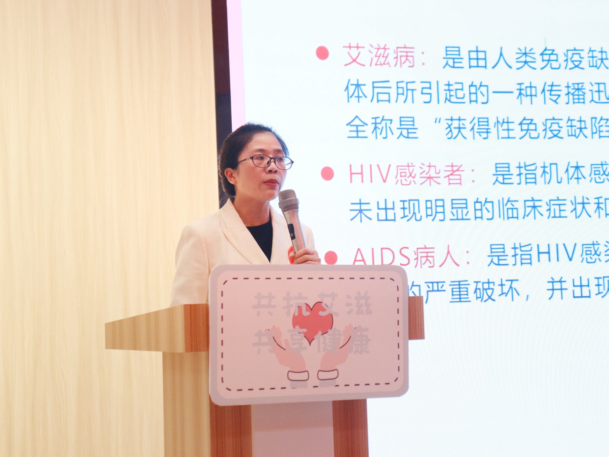 启动仪式结束后,首期“青年爱不艾”艾滋病防治宣讲紧锣密鼓举行。区妇幼保健院李晓多副主任医师为现场同学们全面深入详细讲解了关于艾滋病防治形势,艾滋病传染传播多种知识,其中包括发病症状、预防措施、消除偏见等,帮助增强了同学们的艾滋病防治意识。同时,李晓多医师还与同学们互动,耐心解答了同学们对艾滋病及其防治知识的疑问,同学们也对艾滋病防治有更加深入的了解,也学会了预防艾滋的多种方法。