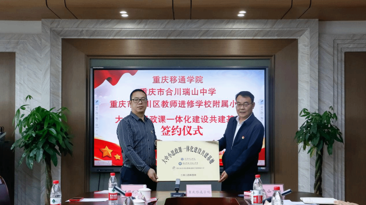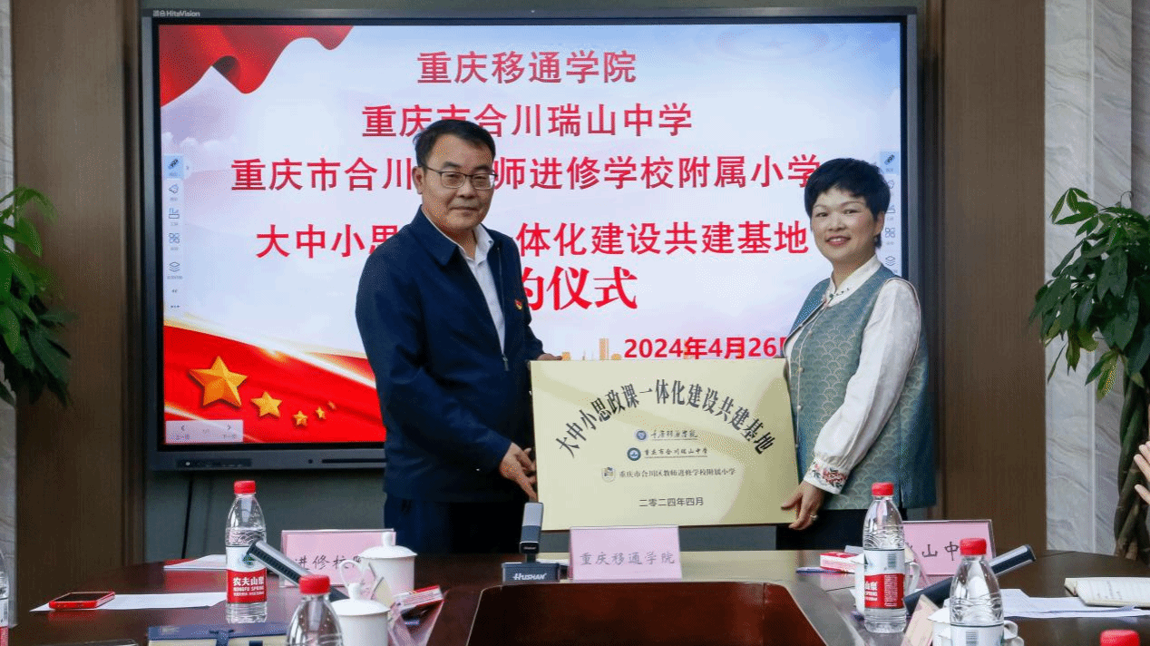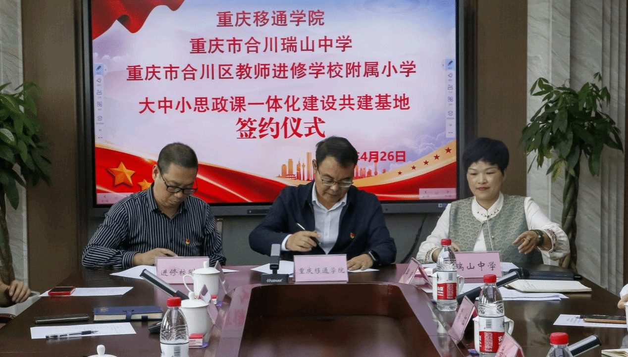 景色宜人春风起,思政深耕育英贤。思政课作为立德树人的关键课程,是一个“跨学段”的有机整体,贯穿大中小学教育和青少年成长全过程。为全面落实教育部等十部门印发的《全面推进“大思政课”建设的工作方案》以及教育部办公厅发布的《关于开展大中小学思政课一体化共同体建设的通知》等文件精神,推进构建思政育人新格局,4月26日下午,重庆移通学院、重庆市合川瑞山中学、合川区教师进修学校附属小学大中小思政课一体化建设共建基地签约仪式在瑞山中学花滩校区举行。