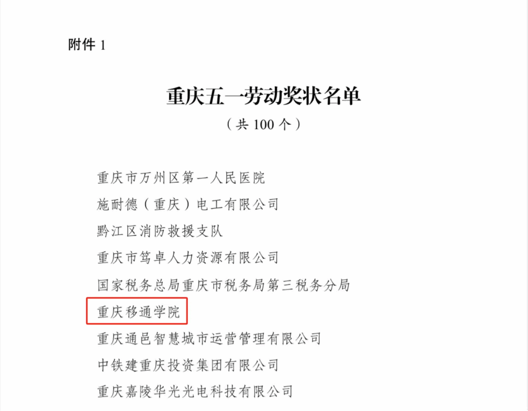 喜讯!我校荣获2024年重庆五一劳动奖状
