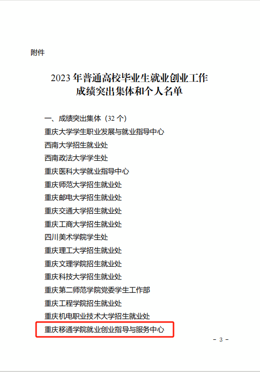 重庆移通学院建校以来,高度重视人才的培养及输送,匹配国家教育方针政策,开创“四位一体双院制+特色课程”的育人体系,以素质教育综合培养为重要引领,服务落实国家重大战略,借助高校师生资源助力地方经济社会发展,引导激励广大移通学子投身中国式现代化建设,学校为社会输送了大量拥有较强的综合素质、国际视野、创新精神、实践能力和竞争优势的高情商、懂管理的应用型人才,为“33618”制造业转型和民营经济中小企业发展贡献高校力量。