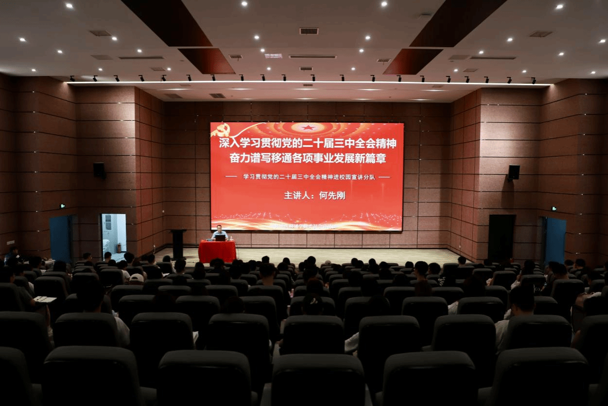 何先刚书记以《深入学习贯彻党的二十届三中全会精神,奋力谱写移通各项事业发展新篇章》为题,从五大方面展开宣讲。其一,强调本次全会是在中国式现代化推进强国建设和民族复兴的关键时期召开,意义重大;其二,深入解读习近平总书记在党的二十届三中全会上的重要讲话精神;其三,全面准确阐释《中共中央关于进一步全面深化改革、推进中国式现代化的决定》所提出的进一步全面深化改革重大举措等内容;其四,贯彻落实习近平总书记对重庆改革工作的“两个定位,三个作用”要求,加快打造重庆成为全面深化改革先行区;其五,重庆和学校如何抓好全会精神的贯彻落实。