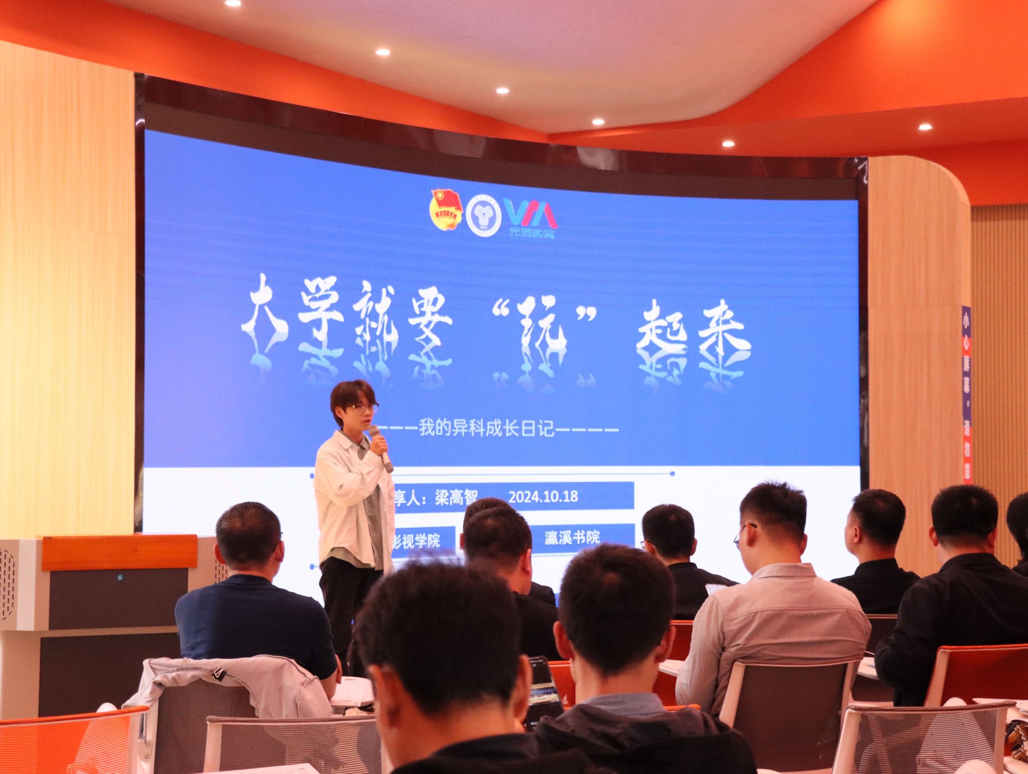 全生异科导师已经融入了学生的学习生活,成为链接师生重要的情感纽带,接下来让我们从学生的故事中听听“异”起成长的故事。首先来自重庆移通学院合川校区的郑利鑫同学,从师生“异”场的角度,向我们介绍学生与异科导师间相辅相成的关系;接着来自綦江校区的梁高智同学从“玩很重要,会玩更重要”这个观点出发,为我们讲述异科导师带来的益处。两位学生代表分别从不同角度分享了异科导师对他们的积极影响,展现了异科导师在学生学习和成长中的重要作用,为自己的大学生活添上精彩的一笔。