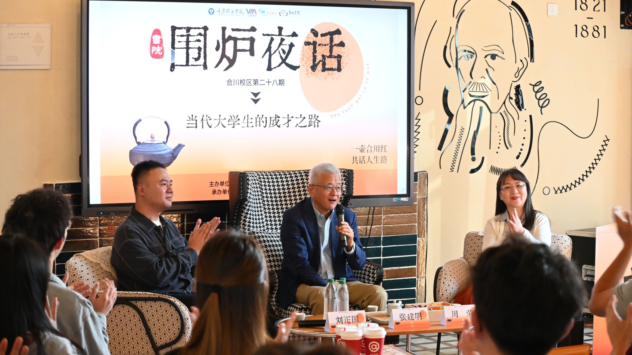 28日下午,张建明做客合川校区书院围炉夜话第二十八期活动,以“当代大学生的成才之路”为主题,与现场师生从大学学习生活、未来发展等方面展开对话交流。张建明表示,重庆移通学院优越的硬件设施、独特的育人模式、大量的优质活动给他留下了深刻的印象,他鼓励学生在这样的教育环境中应该对未来充满信心。他提到,完满教育模式下的书院制为大家打造了高情商最好的实践场域,情商并非苦心阅读就能向外获取,而是要在多元化的社会交往中不断地磨炼总结,向内而生。张建明希望同学们在完满教育的护航下,能够早日找到自己的人生方向,在为理想乘风破浪的过程中成为助推社会发展的一朵浪花。