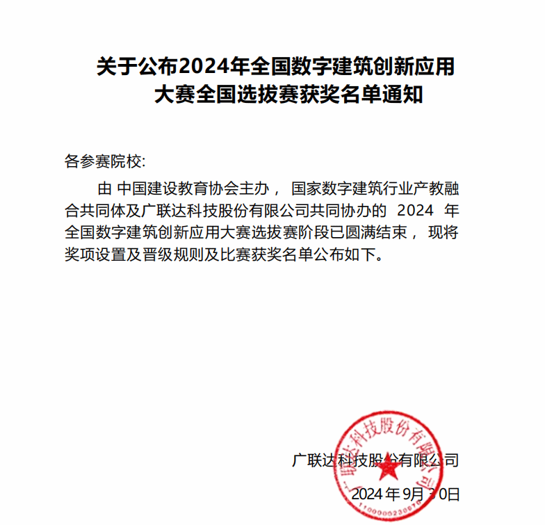 全国数字建筑创新应用大赛为《2024全国普通高校大学生竞赛分析报告》竞赛目录中赛事,是数字建筑领域唯一入选的竞赛,由中国建设教育协会主办,广联达科技股份有限公司协办,是面向全国建筑类专业院校开展的重要国家级竞赛,属于我校学科竞赛A类赛事。大赛自2008年至今已连续举办了十七届,共有来自全国30多个省市及自治区千余所院校参赛,占全国所有开设建筑类相关专业院校总数的83%,大赛在全国高校和行业具有较强的影响力。本届大赛要求高,准备时间紧迫,自2024年9月启动以来,指导老师和参赛学生认真备赛,刻苦训练,在全国选拔赛中荣获二等奖的好成绩。