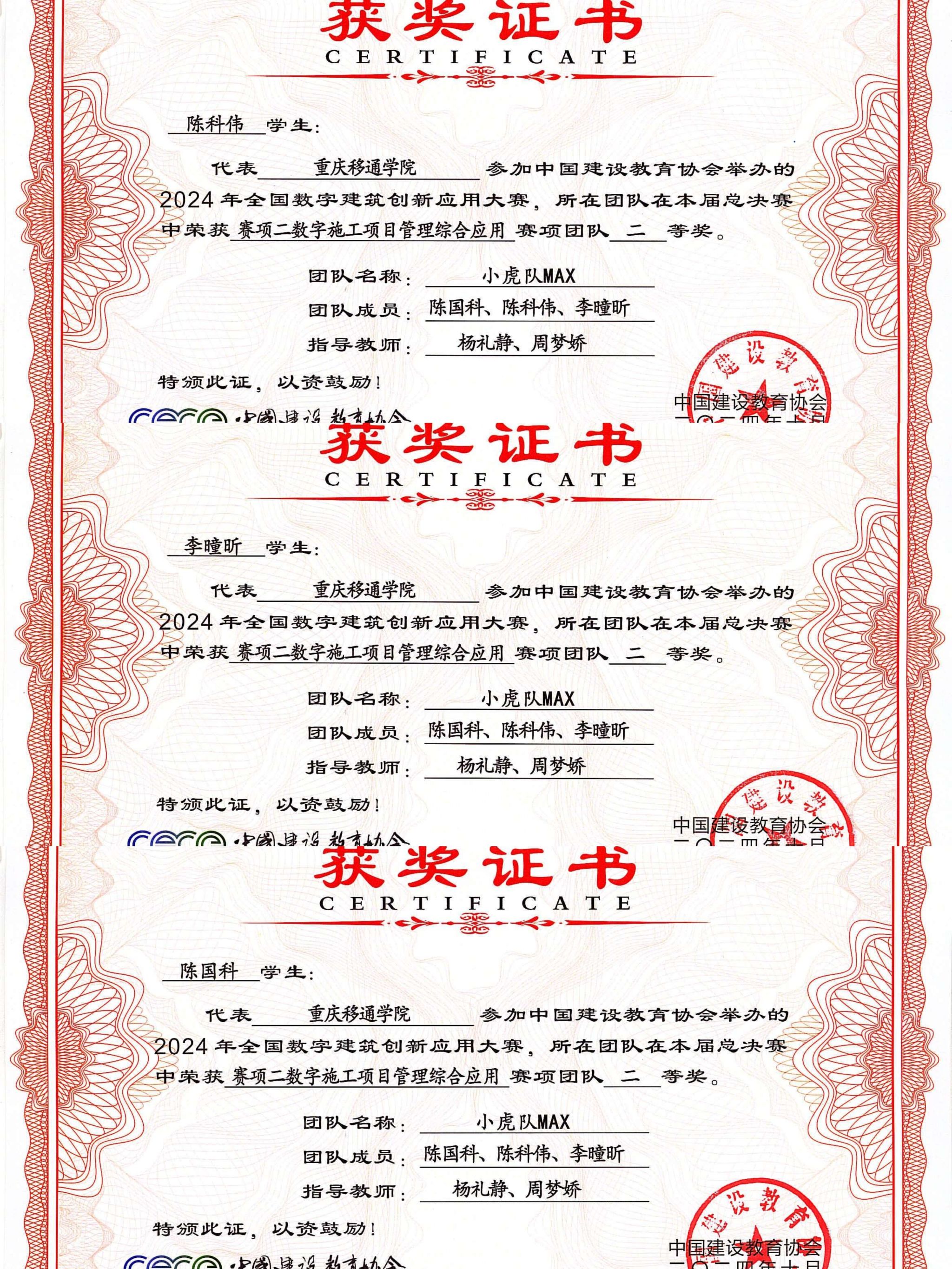 自2004年6月大赛通知以来,工程管理专业师生积极组队,在暑期积极组织队伍报名、备赛,9月组织校内选拔赛,最后优选出7只队伍参加参加全国选拔赛,到十月份“小虎队MAX”通过选拔赛进入全国总决赛,最终在全国总决赛中荣获数字施工项目管理综合应用赛项二等奖的佳绩。