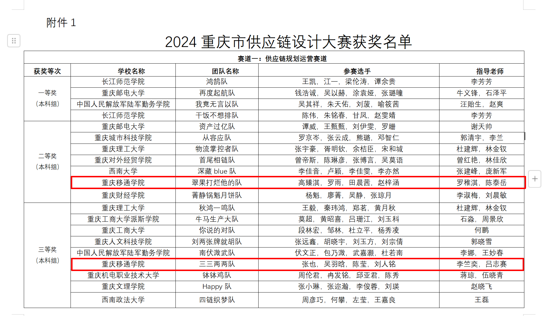 重庆市供应链设计大赛是由重庆市教育委员会主办的大学生学科竞赛。组织大赛的目的是推动各院校供应链相关专业建设,加快培养供应链专业人才,为企业开展供应链创新与应用提供人才支撑。在重庆移通学院数字经济与信息管理学院的大力支持下,经过指导老师们的悉心指导和同学们的认真准备、反复磨练,历经时长一个多月,我院共有四支队伍晋级现场决赛并斩获佳绩。据悉,本次是我院学生第二次参加此项赛事,去年首次参加的一支队伍获得了重庆市三等奖,希望明年我们的学子继续创造佳绩。