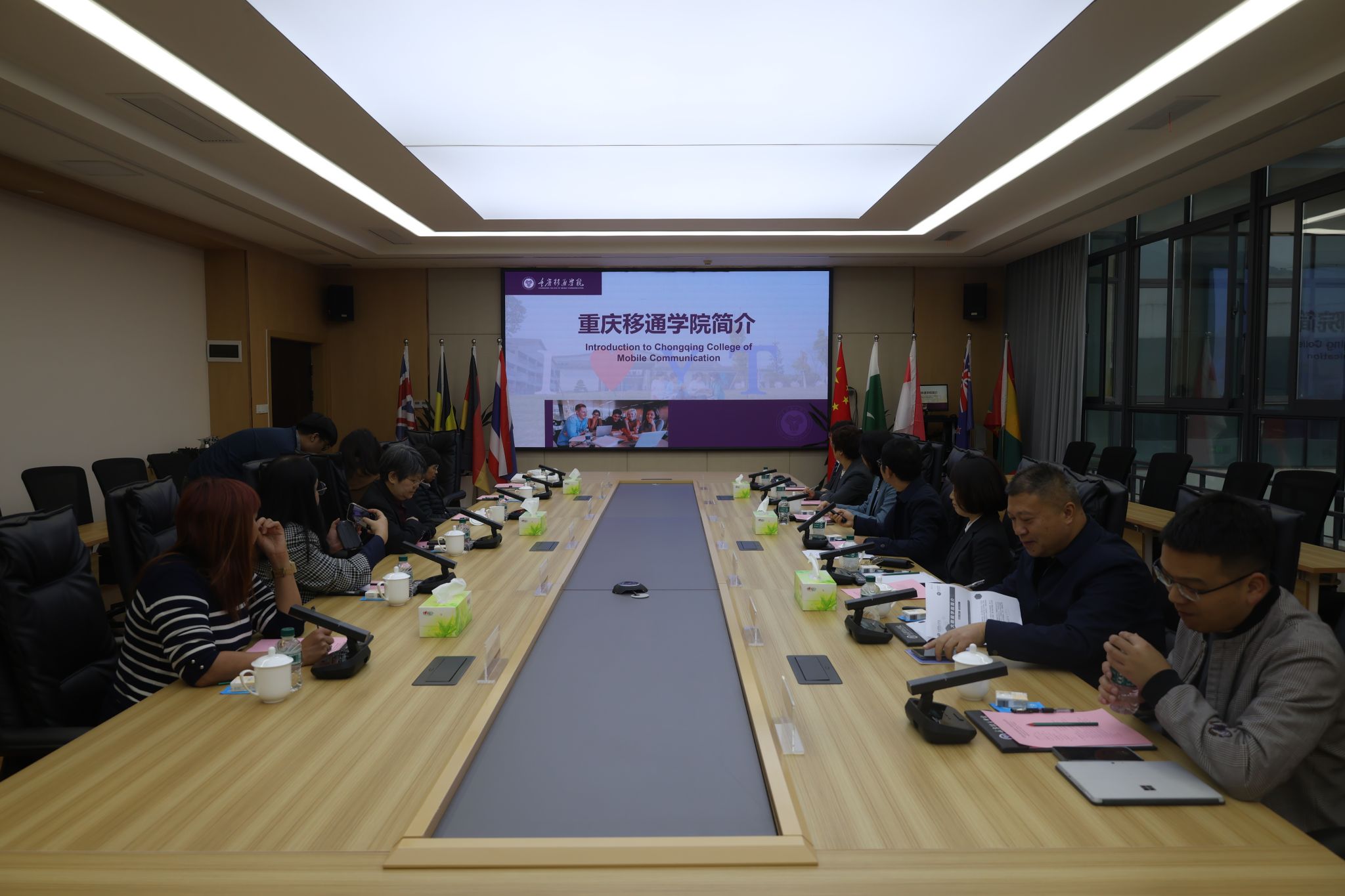 会上,王永周常务副校长从学校办学历程出发,向泰国马哈沙拉堪大学一行详细介绍了学校的办学理念和特色,强调其在创新型人才培养方面的独到之处。他分享了学校的专业建设成果,包括多个特色学科和优势专业,并展示了学校在素质教育、科研教学及社会服务方面取得的显著成就和荣誉,全面展现了重庆移通学院作为一所充满活力与创新精神的高等学府风采。