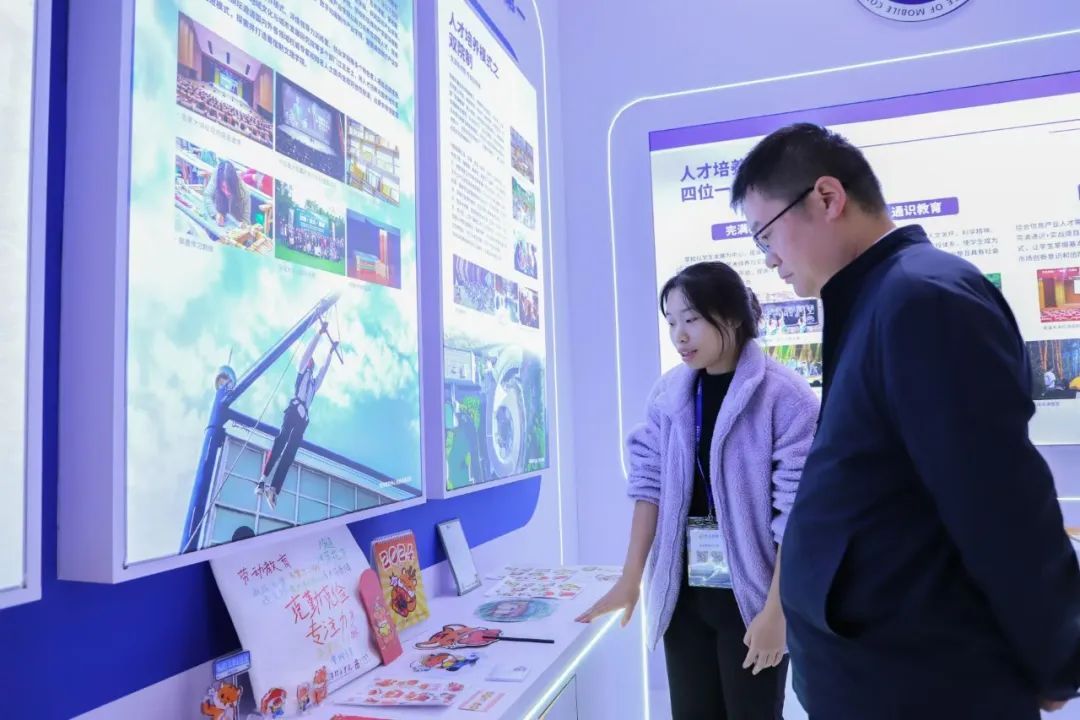 展厅前人潮涌动,观展者们或驻足细读资料、或热情互动交流,他们深入了解后,对学校的教育模式和成果赞不绝口。“移通学院太特别了!从办学理念到育人模式,处处都彰显着以学生为中心,我们能深刻感受到,学校的一切都是围绕学生发展精心设置的,每一个环节都凝聚着对学生成长的关怀,真的是太了不起了。”