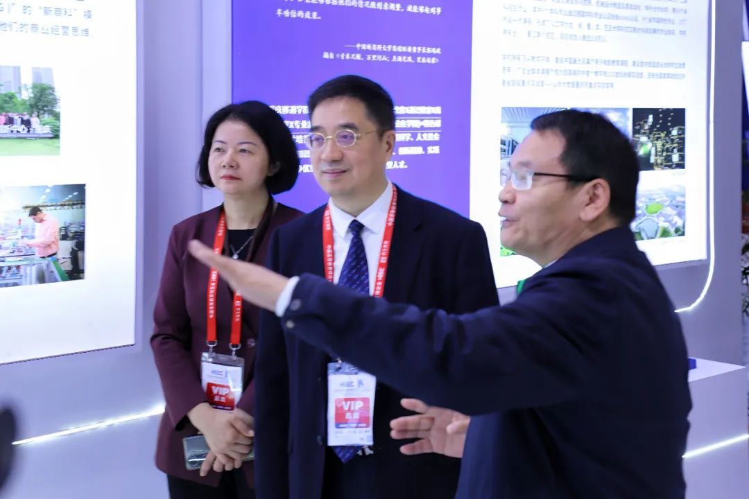 展会首日,重庆市委教育工委书记、市教委主任刘宴兵,市委教育工委委员、市教委副主任蒋云芳,市教委民教处处长陈明政,副处长张淮等领导莅临我校展区,品牌营销与新闻中心主任苏述庚详细介绍了学校办学理念和特色,获得认可点赞。刘宴兵主任也在观展后指导寄语移通:“移通要成为有情怀、有特色的民办高校品牌!”
