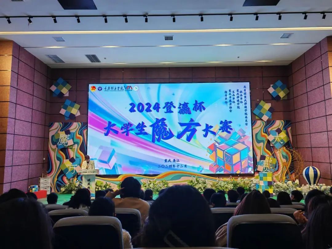12月8日,2024登瀛杯·大学生魔方大赛在重庆移通学院收官。本次大赛吸引了来自全国32个城市210所高校,超260名大学生选手报名。在前期的资格审查初选后,来自北京大学、复旦大学、中国科学院大学等全国84所高校,145名选手线下齐聚重庆移通学院綦江校区,其中更有2019年世界魔方锦标赛冠军、二阶魔方/四阶魔方前亚洲纪录保持者参与比赛。大赛也获中国教育电视台、重庆日报、人民网、中国新闻网、光明网、华龙网、上游新闻、封面新闻、中国教育在线、綦江融媒体中心等多家媒体平台关注报道。
