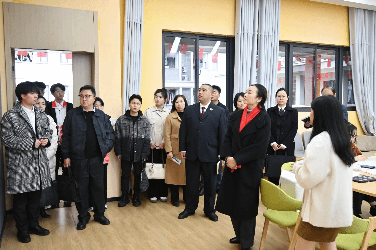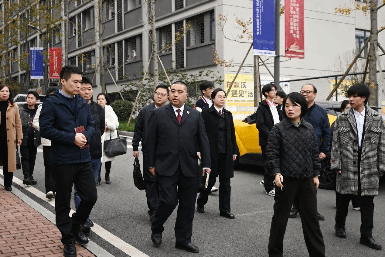 交流当天,綦江区司法机关一行在校长助理谢银平、远景学院副院长强杨和相关老师的陪同下,参观了瀛溪书院,了解我校书院制下法治教育实践活动的开展情况,近距离感受法治元素融入书院生活。充满法律知识的自习室、引人思考的法律长廊等细节设计,彰显着学校对于法治教育坚定不移的态度与匠心独运的创意。通过这些细微之处,学生们可以随时随地接触到法律知识,将其融入日常生活,学以致用,知行合一。