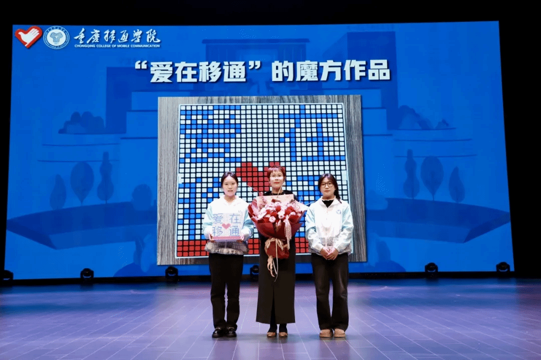 随后,志愿者将魔方协会手工拼接的魔方作品“爱在移通”赠送给刘进,更有学生代表献上鲜花以示敬意。她抱着鲜花,面带笑容地与师生们留下了关于咖啡的故事、关于爱的传递的珍贵合影。