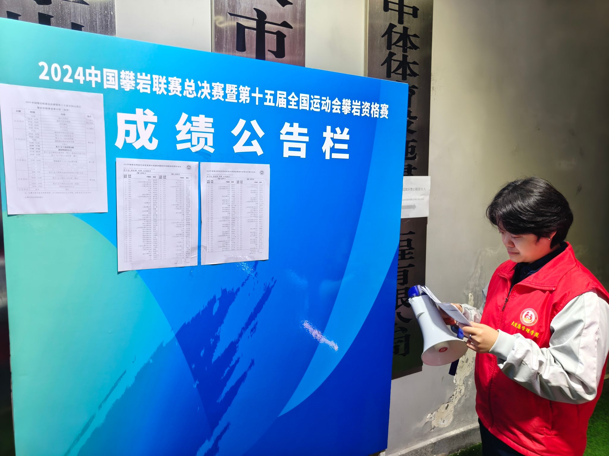 在充满挑战与机遇的十一月,同学们被分为多个小组,各司其职,默默奉献。他们有的在检录组协助裁判进行选手检录和管理;有的在物资组负责物资的准备、运输和补充,还有的在摄像组、后勤组、刷点组、成绩统计组等多个岗位......赛事现场随处可见他们忙碌的身影,他们发挥着自己的专业技能和热情,在工作中积极配合,互相支持,努力将理论知识与实践相结合,践行完满教育的理念。