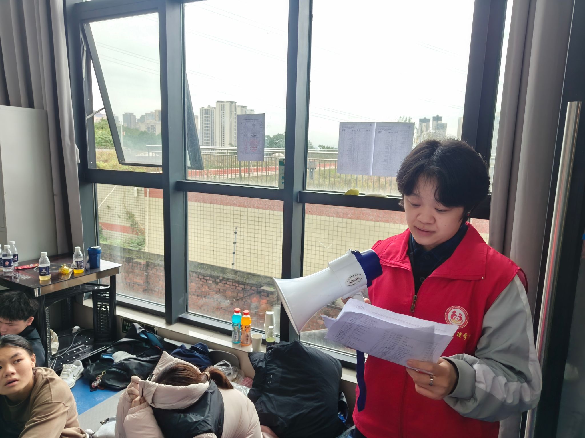 满怀憧憬,挑战与激情碰撞。赛事前夕,大健康管理学院的学生工作者们在学校集结,接受了简短而有效的培训和工作分配。他们满怀憧憬与激情,踏上了前往比赛场地的征程。抵达目的地后,赛事现场负责人给予了热情接待,各小组组长迅速与组员们相互熟悉,简要介绍了工作内容和注意事项。随后,志愿者们整理行装,调整状态,以饱满的热情投入到实习实践工作中。