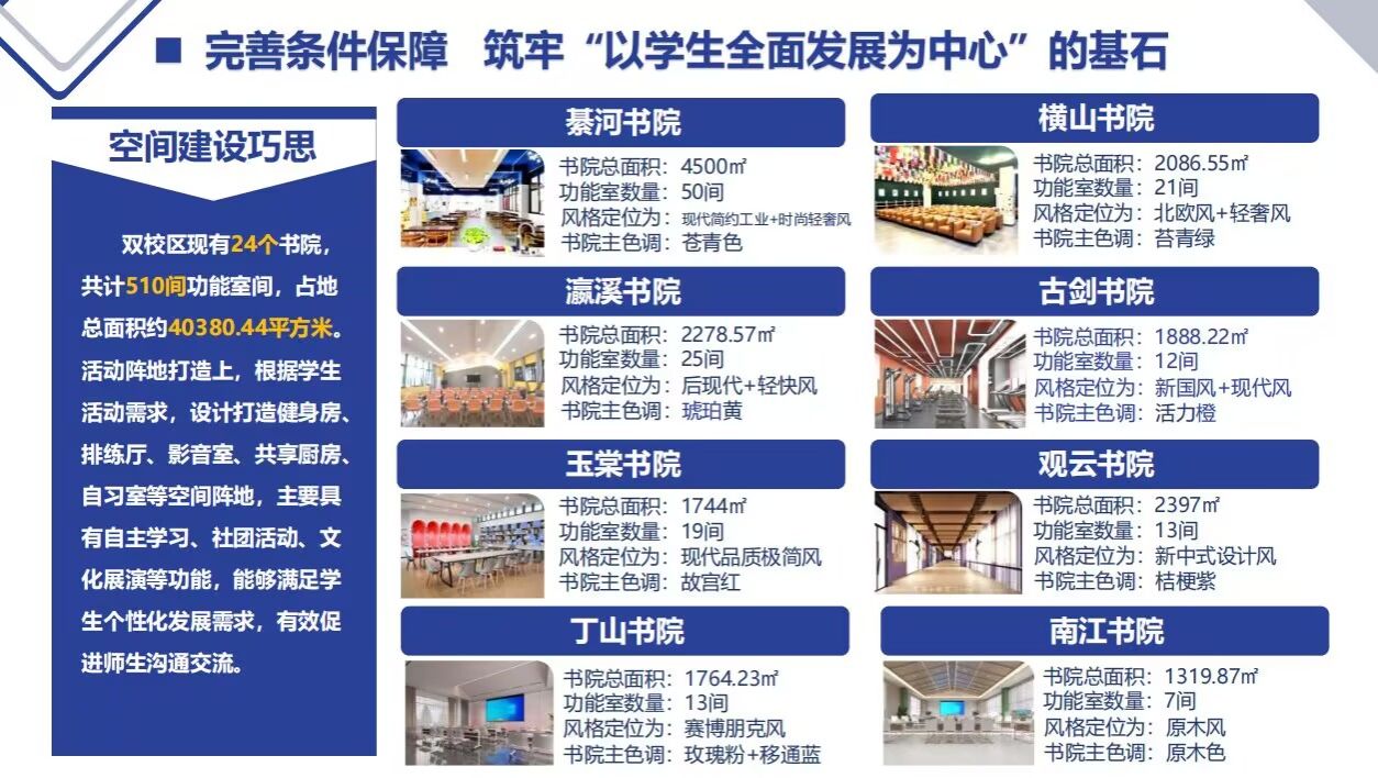 我校自2017年全面实施全员书院制改革以来,在体制机制、硬件空间、内容设计、体系搭建、资源链接、学生获得等方面做了大量具体而有效的工作。在全力开展书院制改革和建设过程中,积极推进书院制改革的实践研究和规律总结,基于学校“四位一体+双院制”特色育人模式,致力于打通一体化育人的“纵贯线”,画好立德树人的最大“同心圆”,整理“行囊”再出发,奔向书院更高品质,更美好的未来!