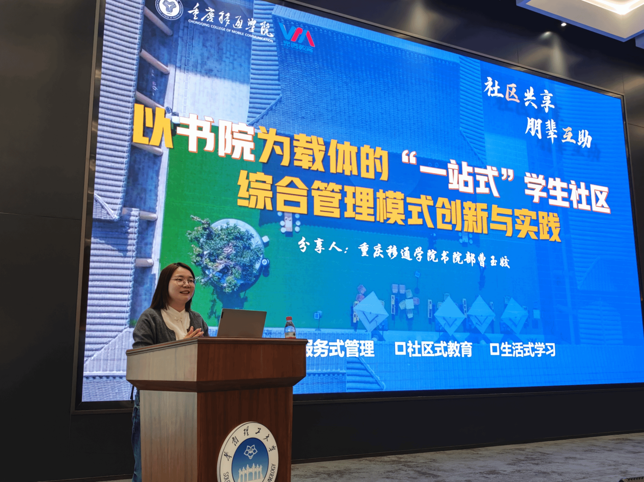 在主题研讨环节,重庆移通学院教师代表积极参与讨论,踊跃发言,根据《高校“一站式”学生社区综合管理模式建设提质增效指南》,分别从党建引领、队伍入驻、学生参与、文化建设、数字赋能、条件保障6大指标入手,致力于将“移通名片”进一步传播,曹玉姣部长被推选为发言代表在结业仪式上分享讲话。