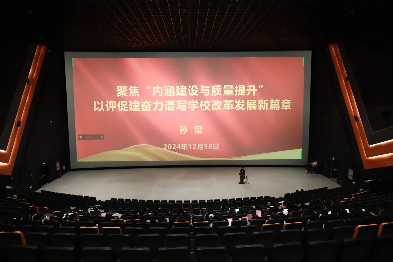 主旨报告环节,副校长孙玺发表了题为《聚焦“内涵建设与质量提升”,以评促建,奋力谱写学校改革发展新篇章》的主旨演讲。她在主旨报告中指出,学校2024年以迎接本科教学工作合格评估为契机,不断提升教育教学质量和人才培养质量。她从“内涵建设与质量提升”“专业内涵提升工程”“课程质量提升工程”“课堂教学改革工程”等十个方面对2024年教学工作进行总结汇报。孙玺强调,2025年是迎接本科教学工作合格评估的关键一年,学校将坚持立德树人根本任务,坚持以学生发展为中心,从人才培养方案的科学化与特色化、专业建设追求内涵化与国际化、课程建设推进数智化与资源化等八个方面开展工作,进一步提升教育教学质量。同时,学校还将以本科教学工作合格评估为抓手,全力夯实发展基础,突出办学特色,致力于建设特色鲜明的国内一流高水平应用型大学,为教育事业发展书写新的篇章。
