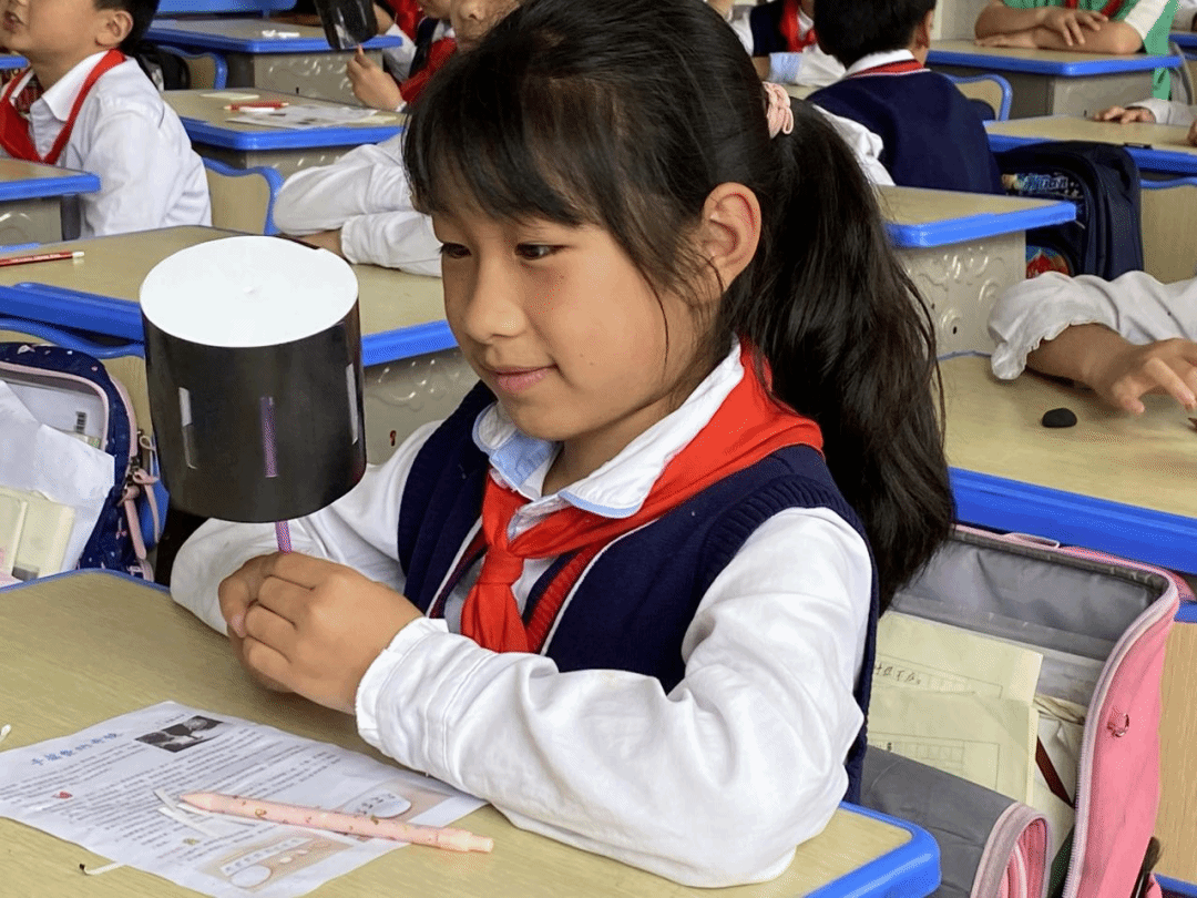 在课程设置上,电影美育实践基地依托学校“四位一体双院制+特色课程”的人才培养模式,充分发挥「通识+特色」教育优势,涵盖了电影鉴赏、文化融合、拍摄制作等多个维度。其中,费纳奇镜动画成像制作课让小学生们亲手体验动画创作的乐趣,了解电影画面形成的奇妙原理,激发了他们对动画制作的兴趣与好奇;摄影课则带领小学生走进光影的世界,学习对焦、曝光等摄影技巧,在校园及周边环境中捕捉美好瞬间,培养他们敏锐的观察力和对美的感知能力;电影手帐手工课鼓励他们以手帐的形式记录电影观后感,锻炼了他们的创意表达与手工制作技能,同时加深了对电影内容的理解与记忆。